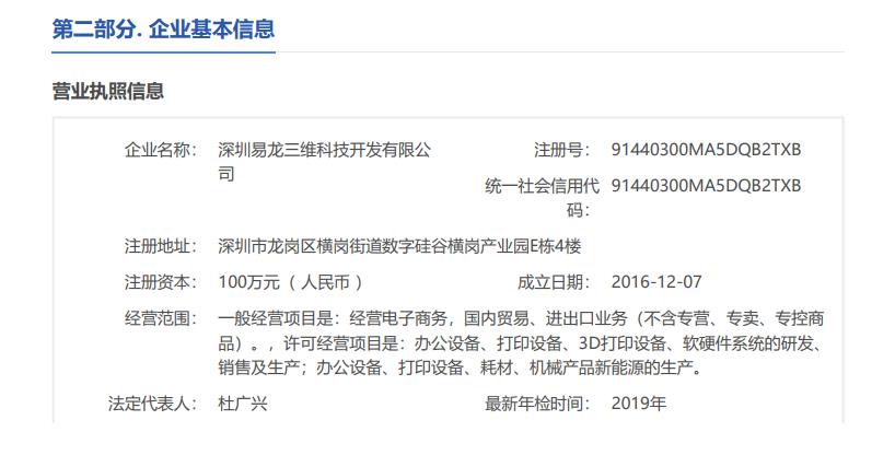 深圳易龍三維科技開(kāi)發(fā)有限公司于2016年12月在深圳正式注冊(cè),是昆明博易創(chuàng)科技開(kāi)發(fā)有限公司全資控股公司。2003—2006年前身是昆明博易創(chuàng)研究所,2006年正式注冊(cè)昆明博易創(chuàng)科技開(kāi)發(fā)有限公司。2003—2006年開(kāi)創(chuàng)制相機(jī)或叫萬(wàn)能打印機(jī),后統(tǒng)一用詞萬(wàn)能打印機(jī)、物體打印機(jī)。2009—2012年走上了快速發(fā)展階段,市場(chǎng)和名氣在國(guó)內(nèi)迅速提高,2011年日本商家主動(dòng)到中國(guó)來(lái)代理我們的產(chǎn)品,三個(gè)月后風(fēng)靡全日本。2011年首家推出小型UV打印機(jī),以后進(jìn)入輝煌階段,在全國(guó)以昆明為總部的前提下陸續(xù)設(shè)置上海、深圳辦事處。