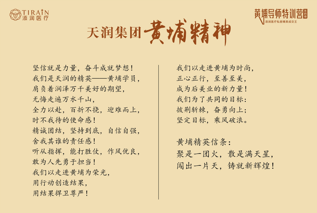 恰似黃埔軍校畢業(yè)生背負(fù)著推動軍事變革與發(fā)展的使命一樣,天潤醫(yī)療黃埔班的導(dǎo)師同樣承擔(dān)著傳承天潤醫(yī)療企業(yè)文化、推動私密醫(yī)療服務(wù)發(fā)展的重任,成為醫(yī)療行業(yè)發(fā)展的助力者,引領(lǐng)行業(yè)朝著更高質(zhì)量、更專業(yè)的方向前行。